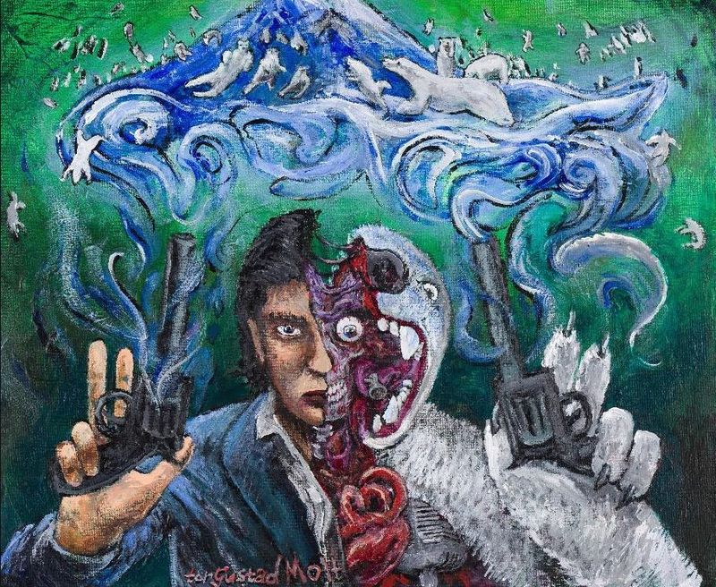 2017 – Dalype Gallery, Bentsegata 1 - divided between me and Marc Gayorfar. 4 large ink/charcoal drawings, 4 acrylic paintings, 3 large pencil drawings.