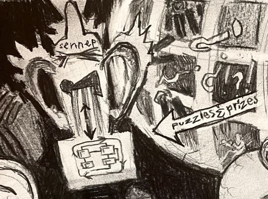 And so, when this is understood the idea is that you get back to the trophy upon reading it backwards - and only then do you see the word at the top of it says "Sennep" which means mustard. And unlike a book or a comic which can be read both directions for different stories, mustard should never go the "wrong" direction... which is my pun played upon the viewer.